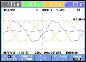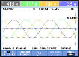 行業(yè)特點(diǎn):醫(yī)院中包含精密治療和診斷儀器設(shè)備,包括數(shù)字減影儀、核磁共振儀(MRI 、螺旋CT、X 射線攝像系統(tǒng)、腦電圖、心電圖、生化實(shí)驗(yàn)儀)等各種檢測儀器等,還有醫(yī)院中的照明設(shè)備、空調(diào)設(shè)備、UPS等負(fù)荷,在工作的過程中會(huì)產(chǎn)生大量諧波且諧波電流波動(dòng)非???,對(duì)配電系統(tǒng)的瞬時(shí)沖擊非常大,容易導(dǎo)致精密治療和診斷儀器設(shè)備的故障率增大、壽命縮短甚至損壞。另外,系統(tǒng)中同樣存在一定的3次諧波電流,會(huì)導(dǎo)致中線過熱,帶來火災(zāi)隱患。該行業(yè)主要配置的電能質(zhì)量產(chǎn)品:電能質(zhì)量綜合補(bǔ)償器(PQFM)、有源電力濾波裝置(PQFA) 現(xiàn)場情況:該醫(yī)院為某人民醫(yī)院,其主要諧波負(fù)荷為LED節(jié)能燈、UPS、變頻空調(diào)以及相關(guān)醫(yī)療設(shè)備,現(xiàn)場配置有1000KVA變壓器供電,其電流諧波主要集中于3次、5次、7次和9次。 處理方案:該現(xiàn)場變壓器配置200A有源電力濾波器,電流波形由非正弦補(bǔ)償至標(biāo)準(zhǔn)正弦波狀態(tài),電流的諧波含量由11.6%下降至4.1%,濾除了電網(wǎng)中的諧波電流,且消除了部分零線電流,防止零線過熱,有效的保證的醫(yī)院供電系統(tǒng)的可靠性。 |